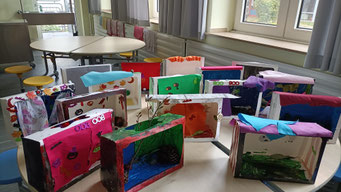 Am Dienstag folgte eine große Bastelaktion, bei der die Kinder ihre eigenen Theaterbühnen gestalteten – mit den unterschiedlichsten Materialien und ganz viel Fantasie.